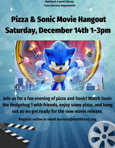 Join us for a fun evening of pizza and Sonic! Watch Sonic the Hedgehog 1 with friends, enjoy some pizza, and hang out as we get ready for the new movie release.